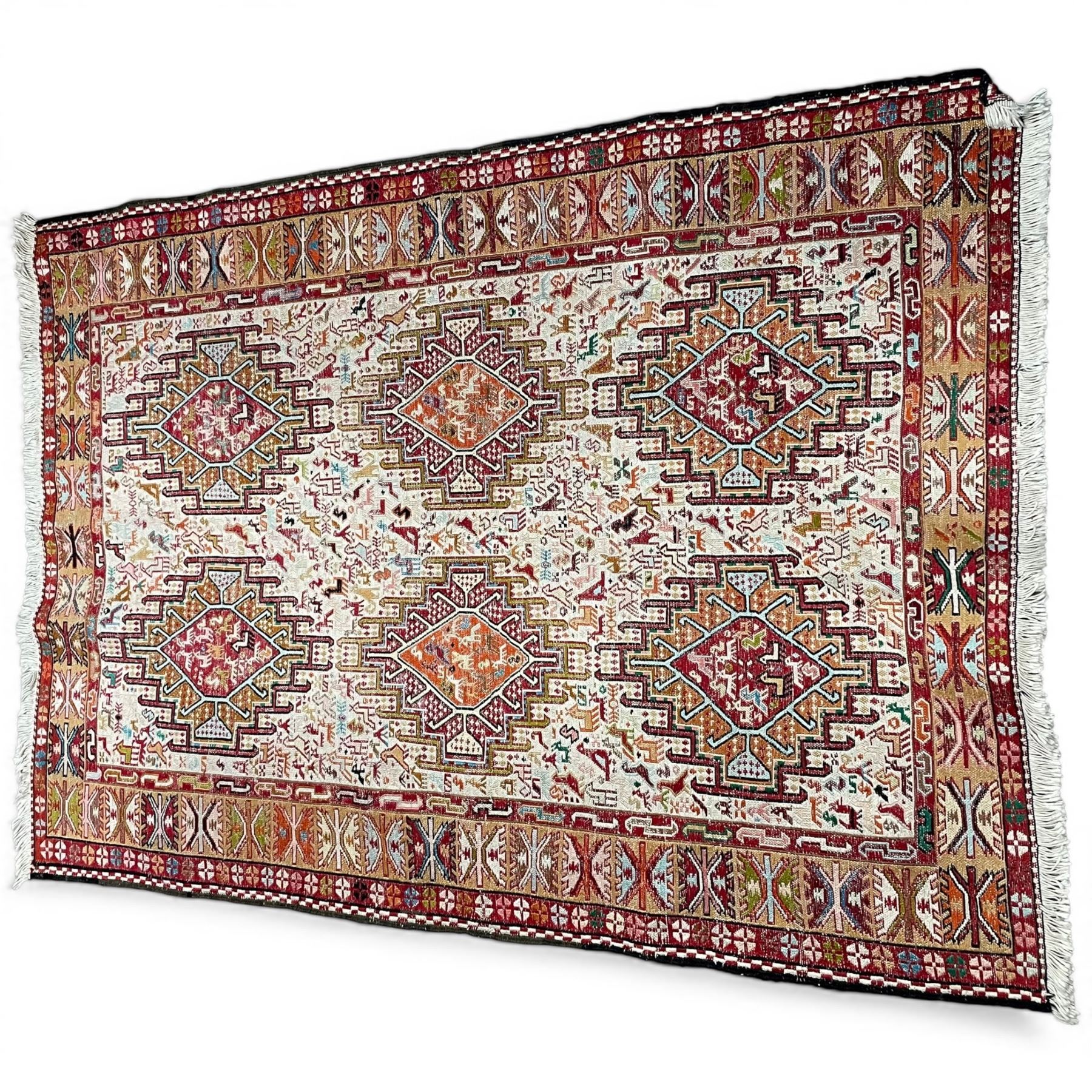 Lot 524a Qum Persian Silk Rug, Handmade Featuring a Geometric Medallion Pattern 55x39.5"