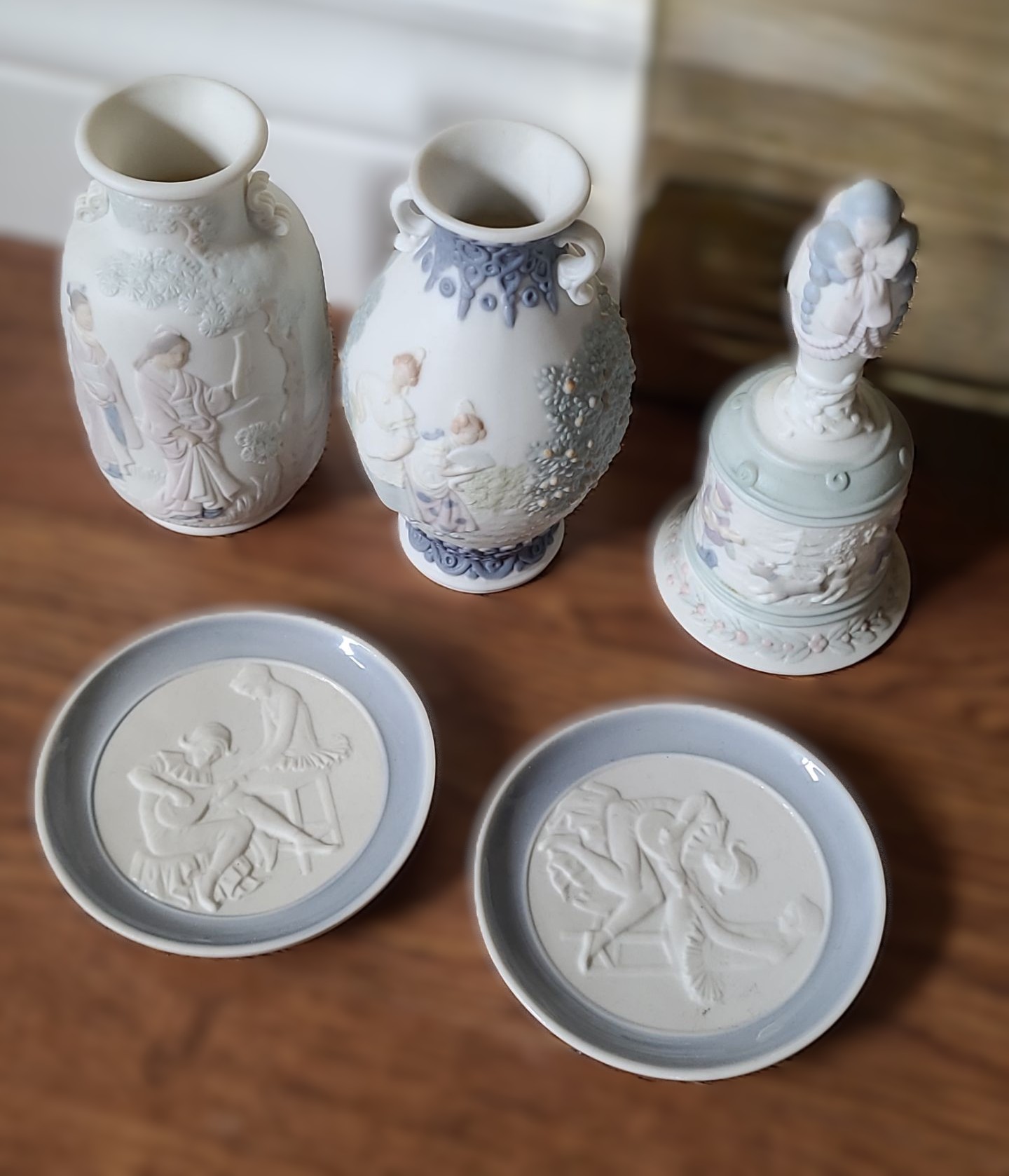 Lot 253 Lladro Small Jars and Bell 4.5 T, Mini Plates 3" Diameter