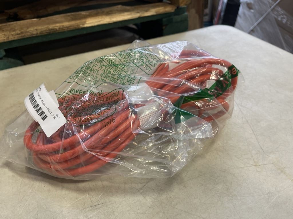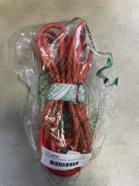 Lot 28 AS NEW 25FT ORANGE INDOOR OUTDOOR HEAVY DUTY LIGHTED 3 WIRE GROUNDED EXTENSION CORD 14AWG
