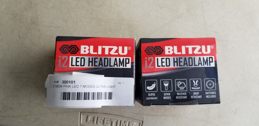 Lot 69 2 NEW PINK LED 7 MODES ULTRA LIGHT WEATHER RESISTANT HEADLAMPS WITH BATTERIES