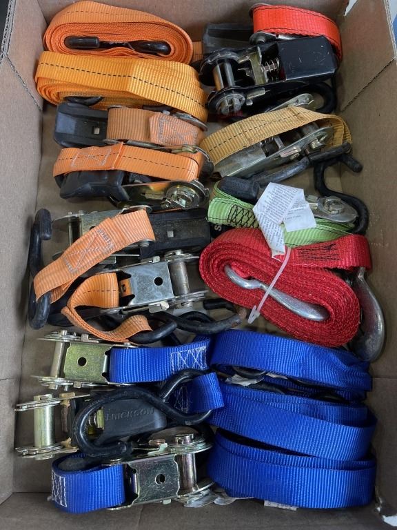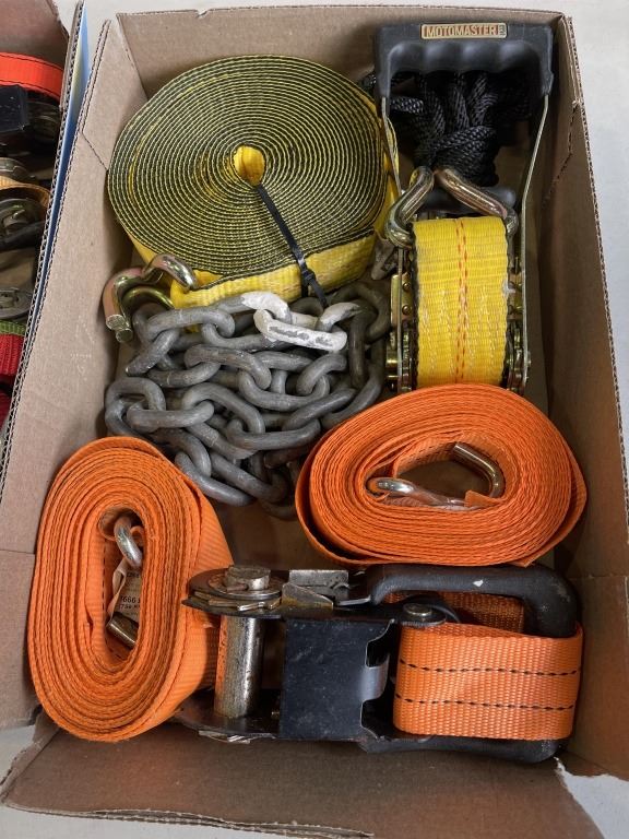 2 TRAYS OF ASSORTED RATCHET STRAPS AND CHAIN