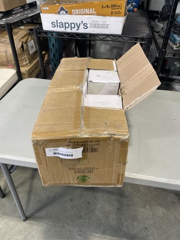Lot 113 NEW CASE OF WOODEN STIR STICKS - 1000PCS PER BOX, 9 BOXES,