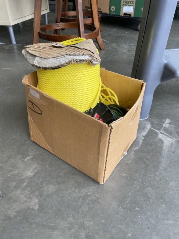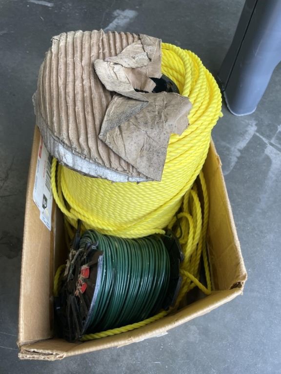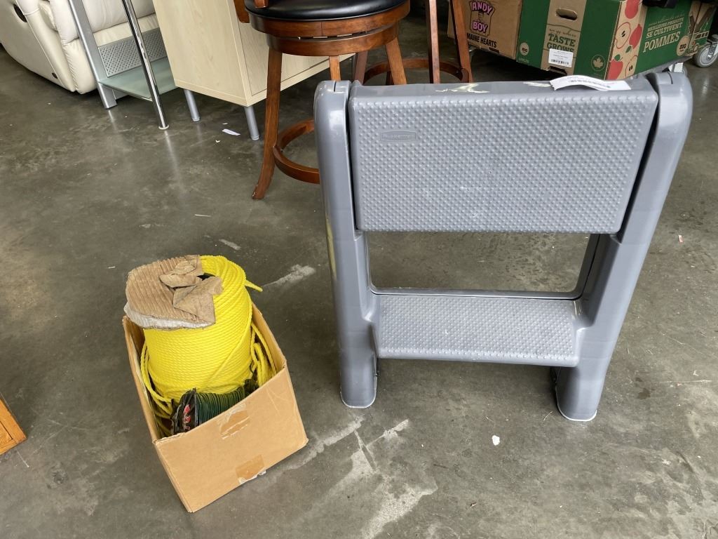 ROLL OF TIE WIRE, POLY ROPE AND STEP STOOL