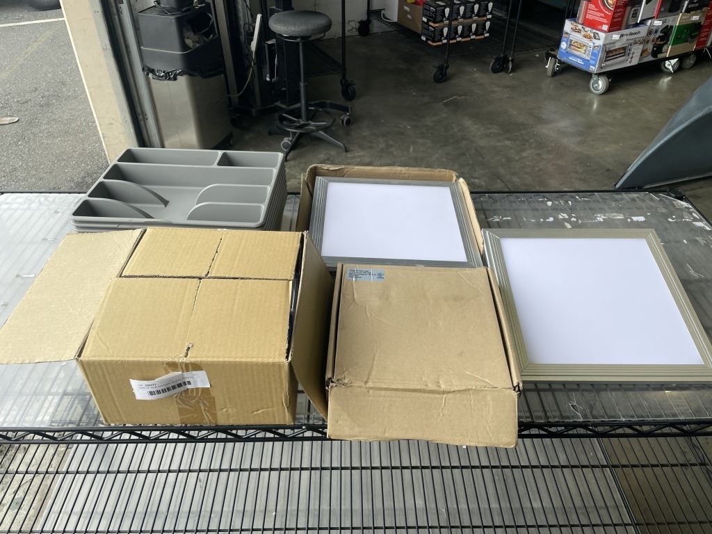 Lot 139 CASE OF NEW SHOWER HEADS, PLASTIC CUTLERY TRAYS AND LED PANEL LIGHTS