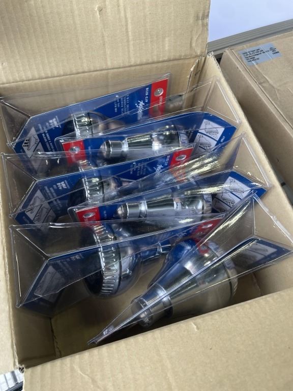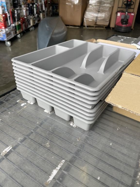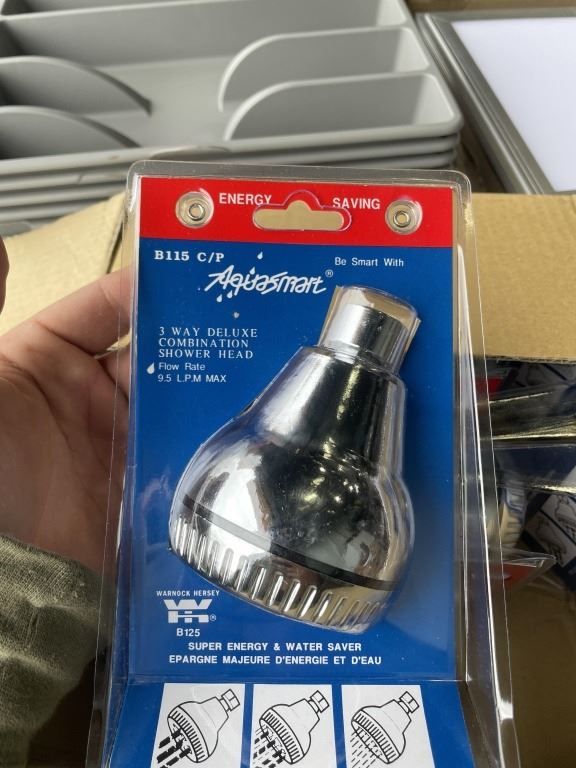 CASE OF NEW SHOWER HEADS, PLASTIC CUTLERY TRAYS AND LED PANEL LIGHTS
