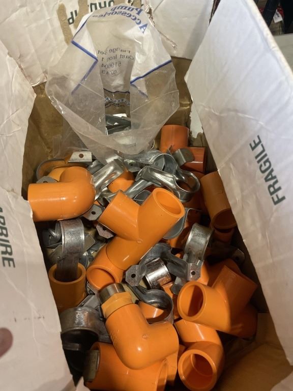 Lot 145 BOX OF 1x1 ORANGE PEX CORNER AND T PIECES W/ BRACKETS