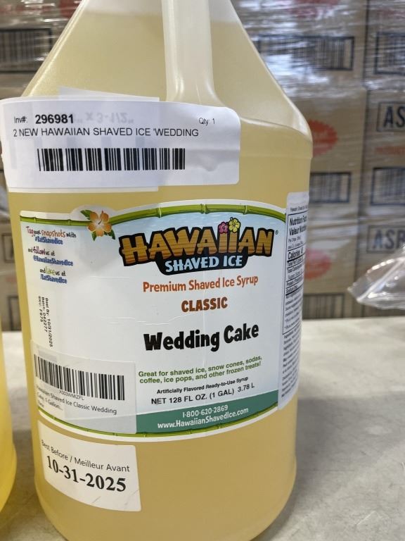 Lot 164 2 NEW HAWAIIAN SHAVED ICE 'WEDDING CAKE' FLAVOURING