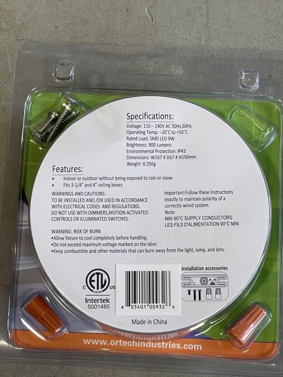 LOT OF 10 ORTECH LED FLUSH MOUNT 9W LED LAMP REPLACES 80W INCANDESCENT LAMPS
