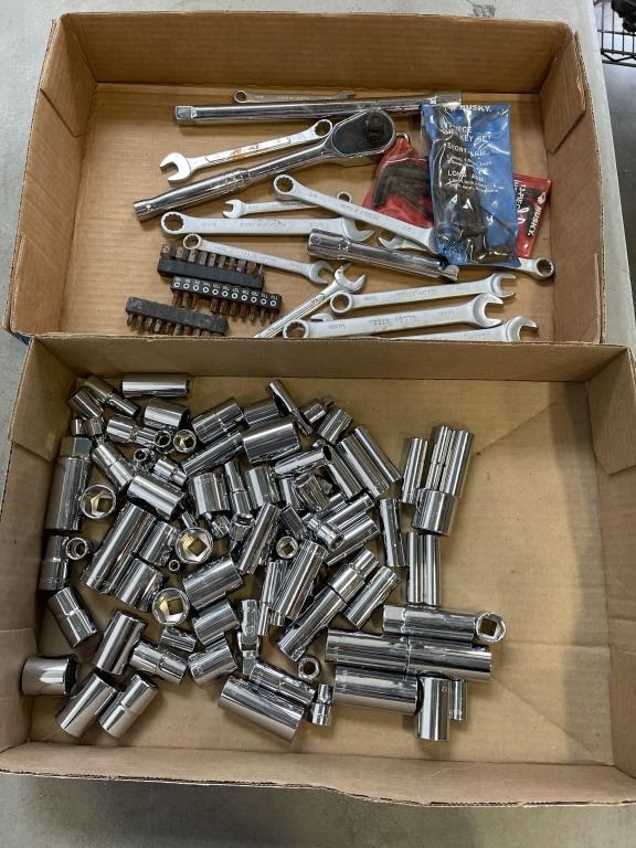 Lot 225 2 TRAYS OF SOCKETS AND WRENCHES