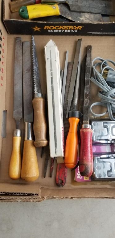 Lot 227 TRAY OF SHOP FILES, CHISELS, DRILL BITS