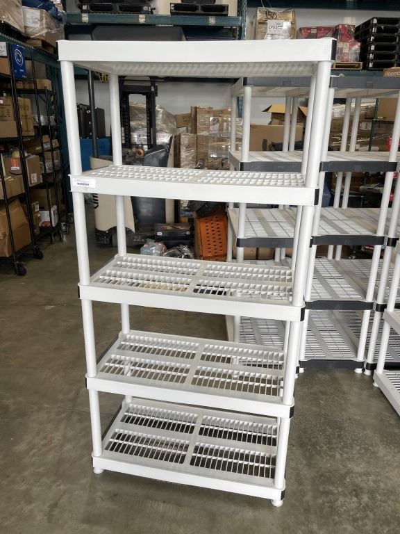 Lot 298 WHITE 4 TIER PLASTIC SHELVING UNIT APPROX 6FT TALL, 36" x 18"