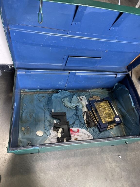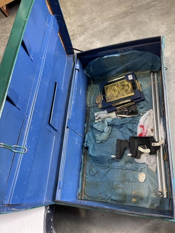 GREEN METAL STORAGE TRUNK