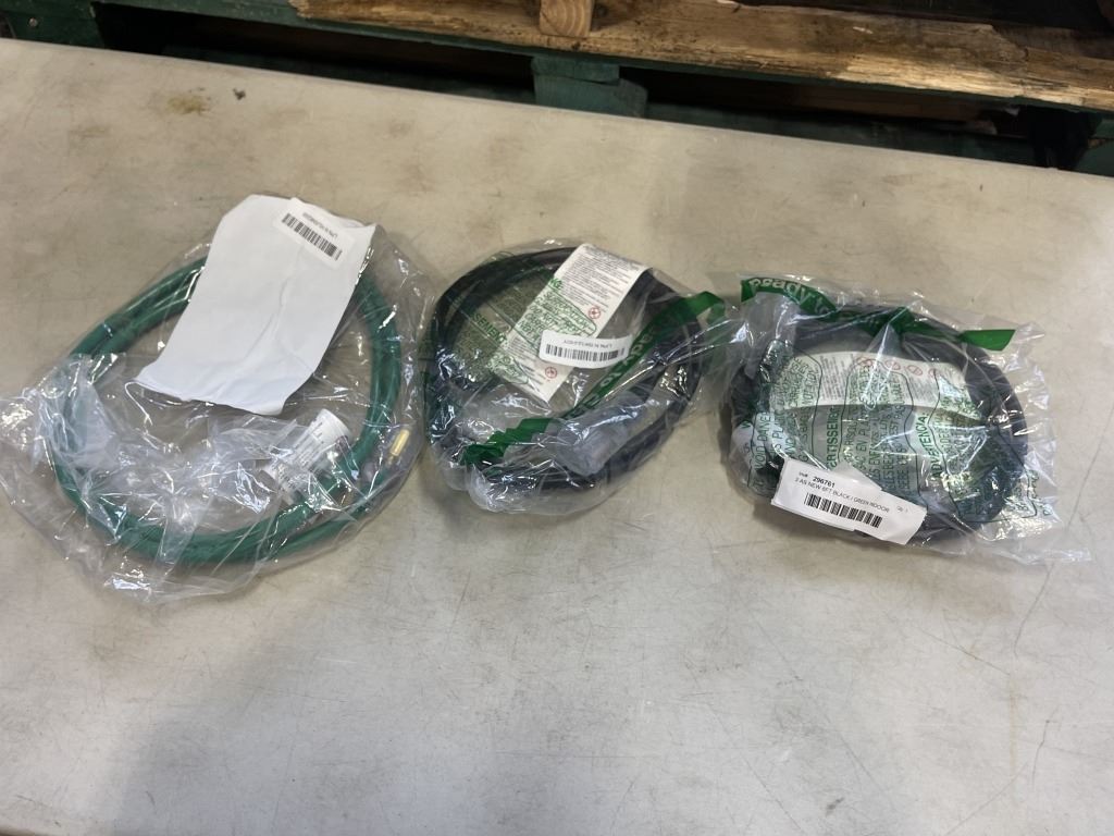 Lot 375 3 AS NEW 6FT BLACK / GREEN INDOOR OUTDOOR HEAVY DUTY LIGHTED 3 WIRE GROUNDED EXTENSION CORD 14AWG