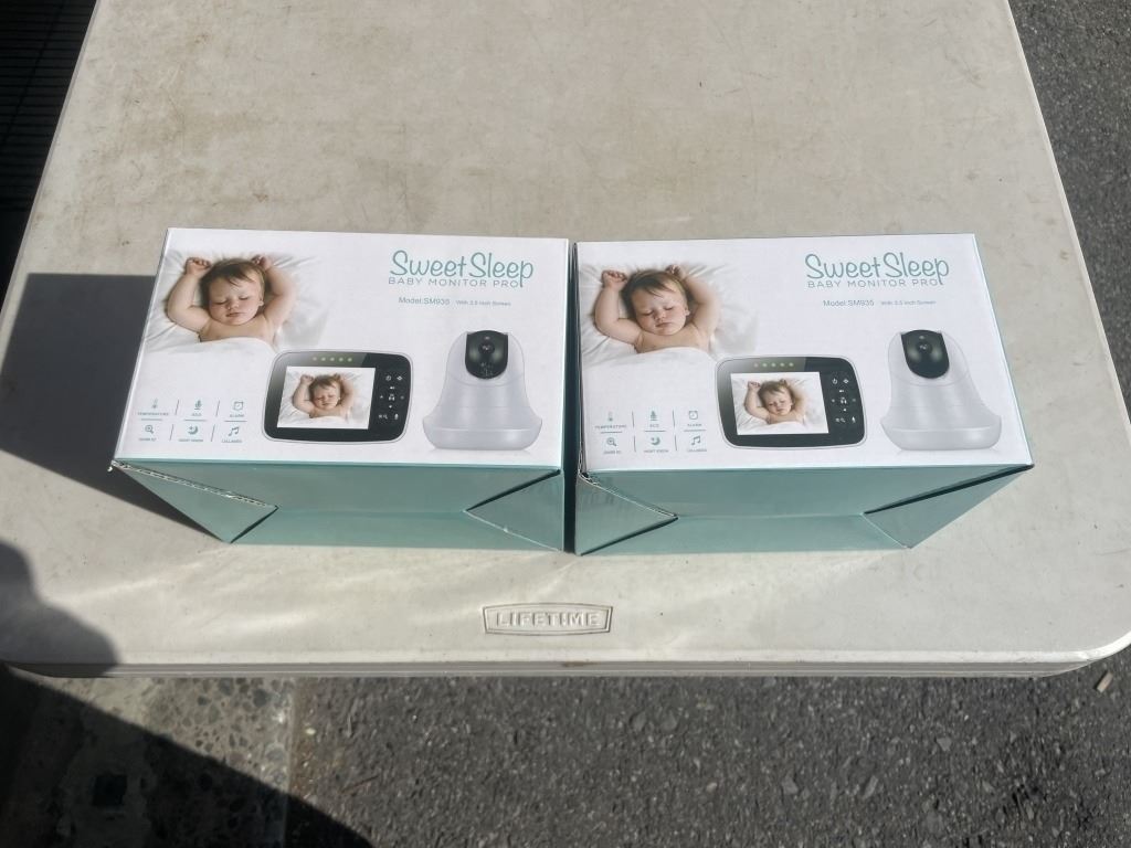 2 NEW SWEET SLEEP BABY MONITOR PRO MODEL SM935 WITH 3.5 INCH SCREEN, TEMPERATURE, ALARM, NIGHT VISION, LULLABIES ETC