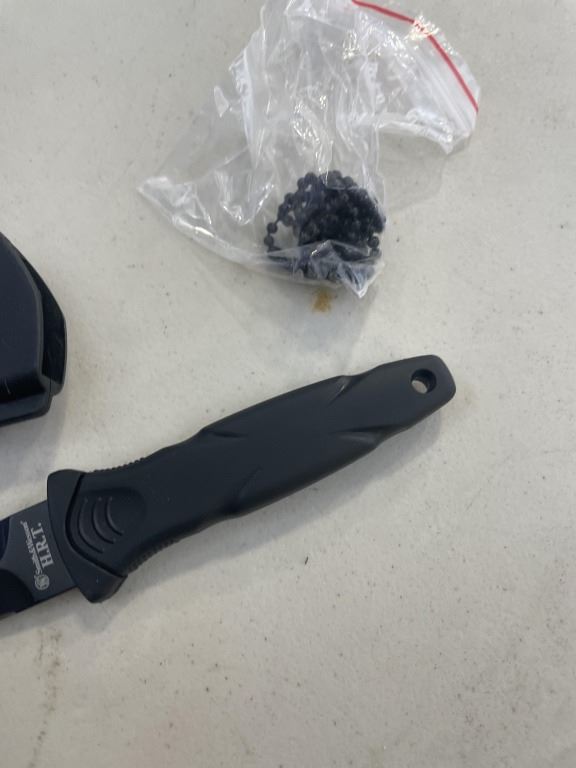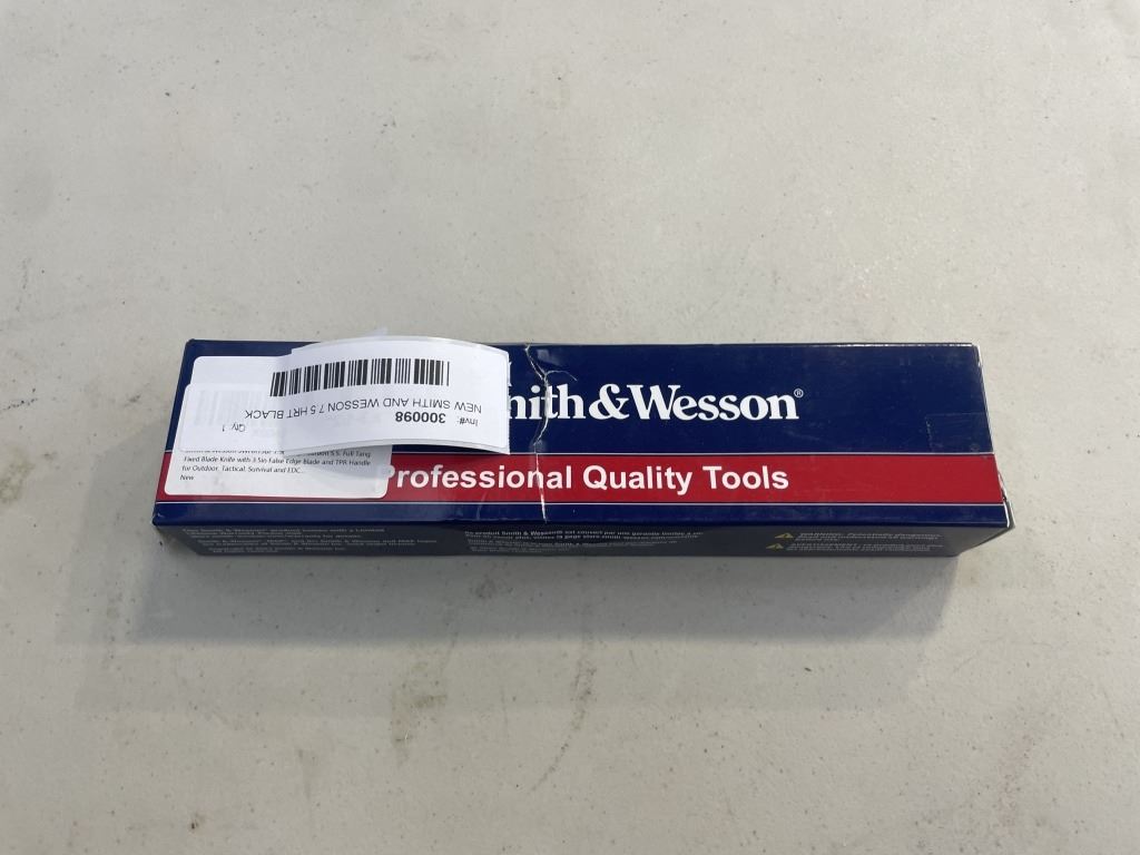 Lot 400 NEW SMITH AND WESSON 7.5 HRT BLACK FALSE EDGE BOOT KNIFE, HIGH CARBON SS
