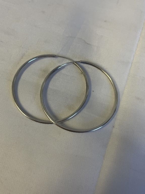 PAIR OF LARGE STERLING SILVER HOOP EARRINGS