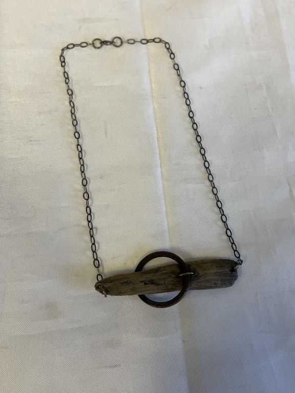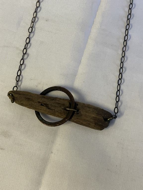 Lot 450 VINTAGE HAND CRAFTED SILVER W/ WOOD PENDANT NECKLACE