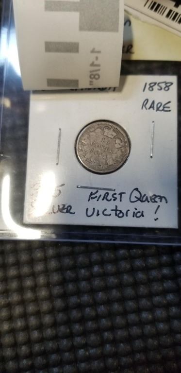 Lot 463 1858 CANADIAN SILVER DIME, FIRST QUEEN VICTORIA .925 SILVER