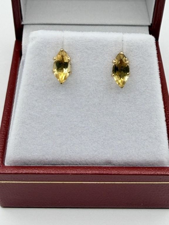 Lot 476 10KT YELLOW GOLD NATURAL CITRINE (0.65CT) EARRINGS, W/A $700.00. CITRINE IS THE BIRTHSTONE FOR NOVEM