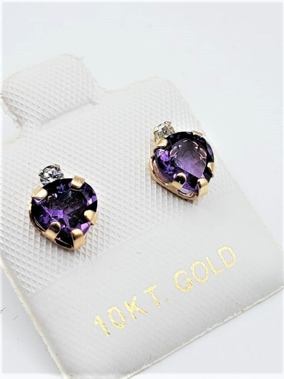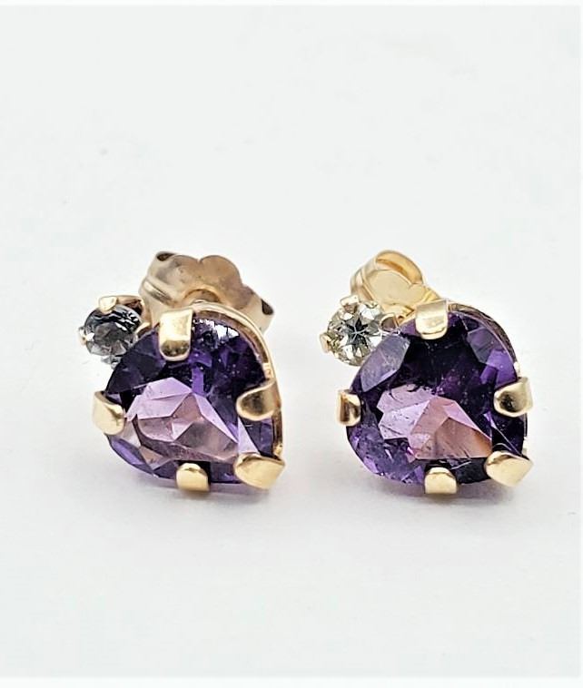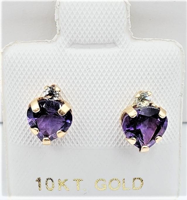 Lot 478 10KT YELLOW GOLD NATURAL AMETHYST (1.5CT) HEART SHAPE EARRINGS, RETAIL $300.00. AMETHYST IS THE BIRT