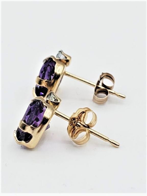 10KT YELLOW GOLD NATURAL AMETHYST (1.5CT) HEART SHAPE EARRINGS, RETAIL $300.00. AMETHYST IS THE BIRTHSTONE FOR FEBRUARY.