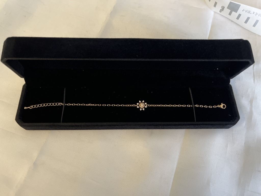 Lot 493 NEW 18K GOLD PLATED 11.0MM SIMULATED DIAMOND (CZ) STARBURST BRACELET, ADJUSTABLE 7-8" LONG