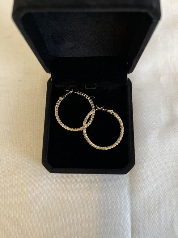 NEW 18K GOLD PLATED 33.0MM SIMULATED DIAMOND (CZ) HOOP EARRINGS