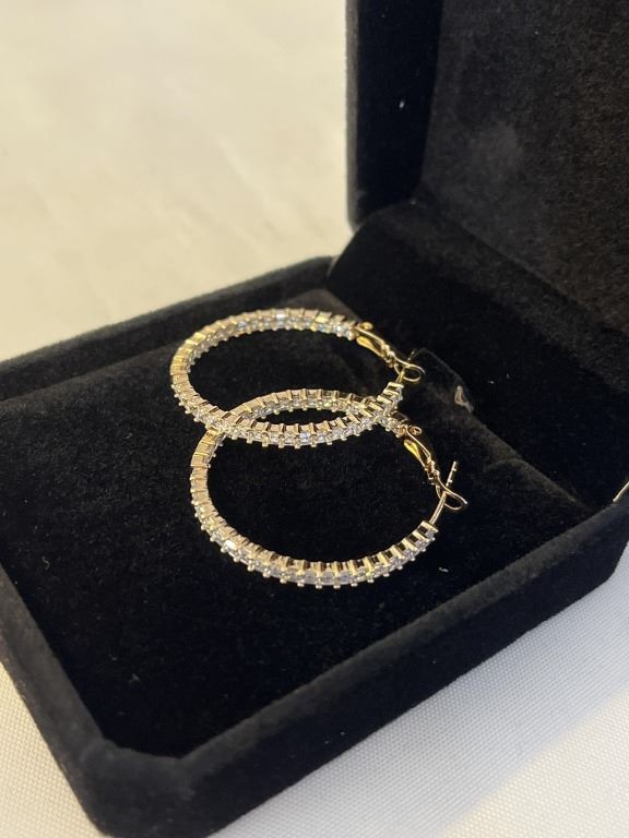 Lot 494 NEW 18K GOLD PLATED 33.0MM SIMULATED DIAMOND (CZ) HOOP EARRINGS