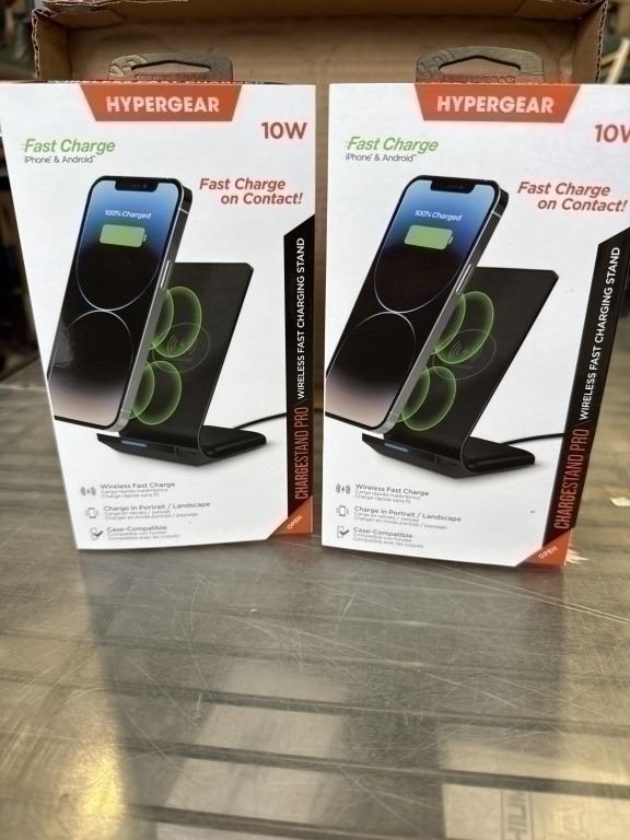 Lot 509 2 NEW HYPERGEAR FAST CHARGE WIRELESS CHARGERS, WORKS IN PORTRAIT OR LANDSCAPE, CASE COMPATIBLE, INCL