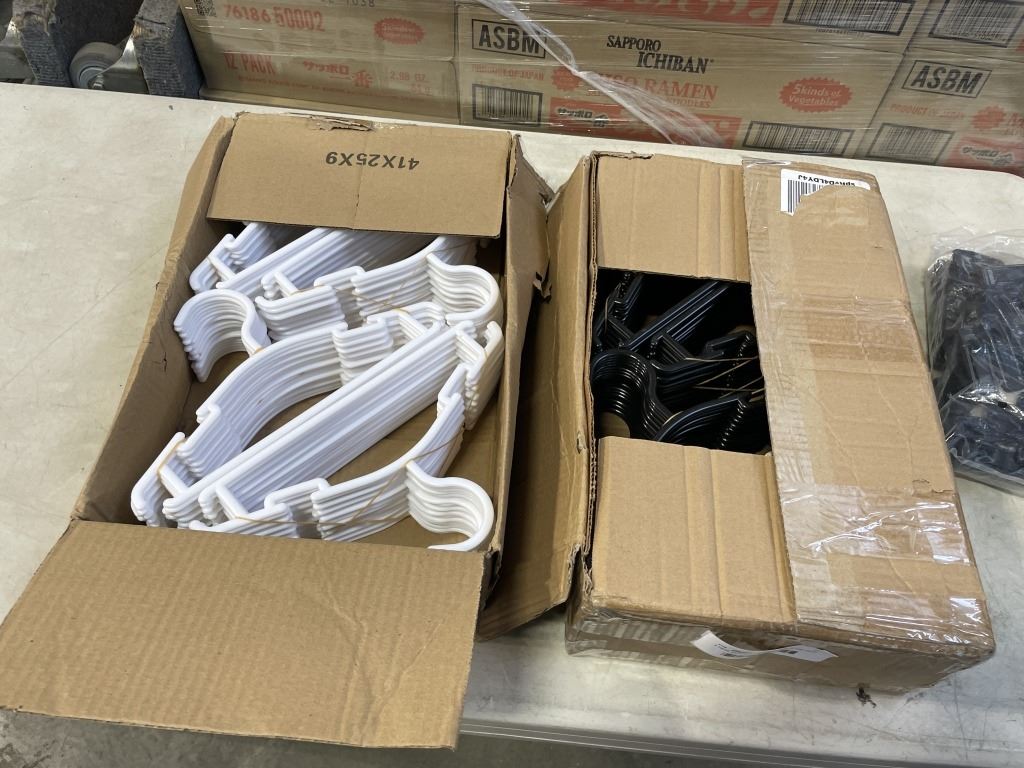 Lot 531 2 NEW BOXES OF BABY HANGERS AND BAG OF NEW CLIPS