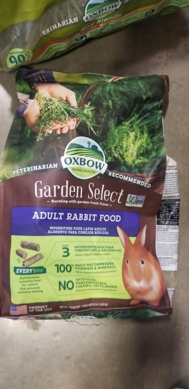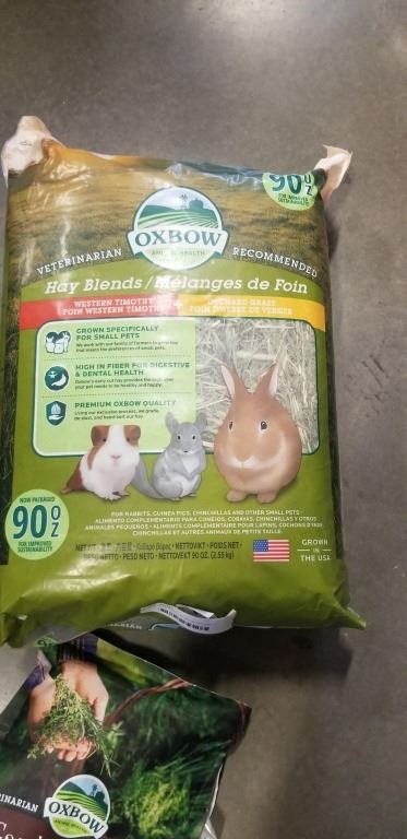 BAG OF OXFORD HAY BLEND AND BAG OF ADULT RABBIT FOOD