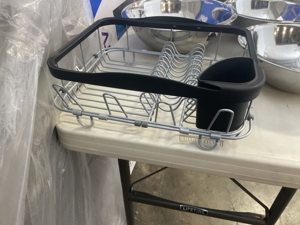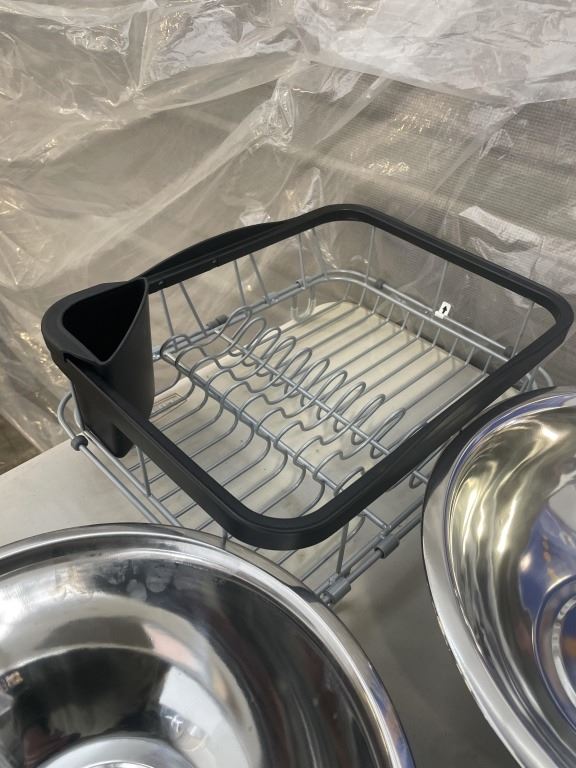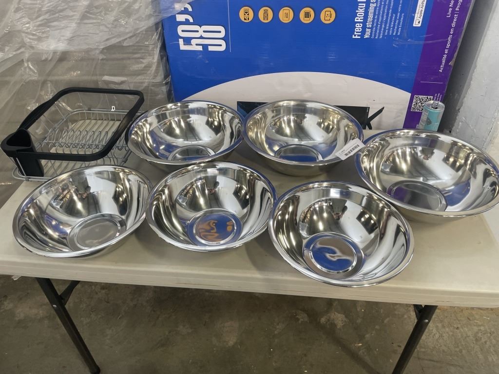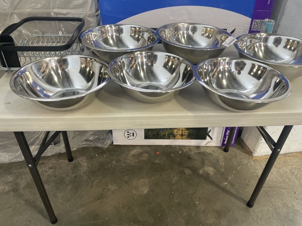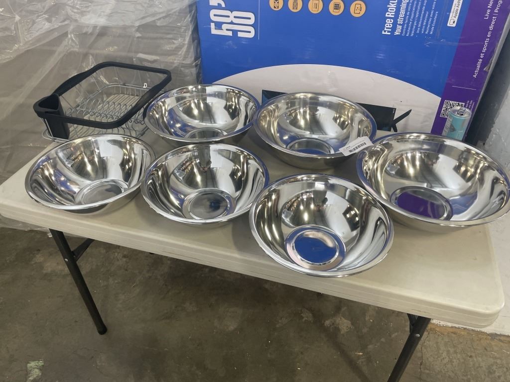 Lot 553 4 STAINLESS MIXING BOWLS AND DISH RACK