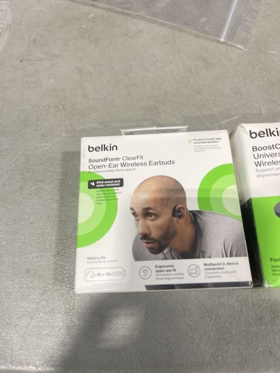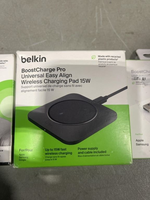 Lot 569 BELKIN BOOSTCHARGE PRO UNIVERSAL EASY ALIGN WIRELESS CHARGIN PAD 15W, BELKIN SOUNDFORM CLEAR FIT OPE