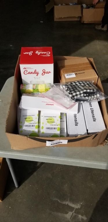 Lot 584 NEW AMAZON OVERSTOCK ITEMS INCLUDING CANDY JAR NON SLPI MATS AND A TABLE PAD