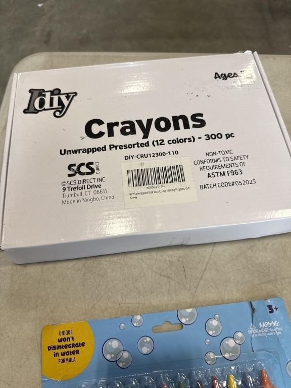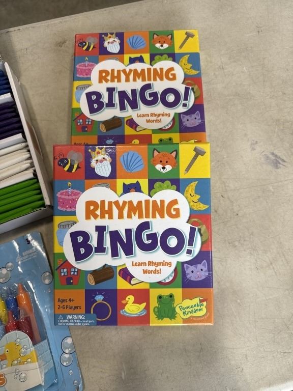 Lot 654 NEW IDIY 300PC UNWRAPPED SORTED 12 COLOR CRAYON SET, 2 NEW RHYMING BINGO GAMES, AND NEW SET OF BATHT