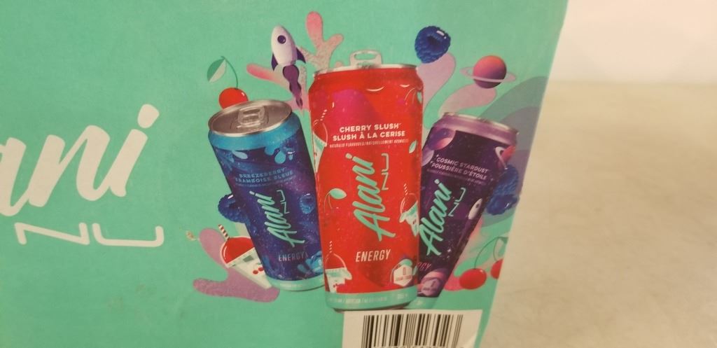 Lot 673 CASE OF ALANI NU ENERGY DRINKS, VARITY PACK INCLUDES CHERRY SLUSH, COSMIC STARDUST AND BREEZEBERRY F