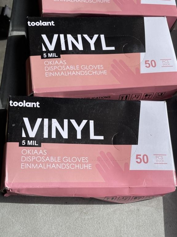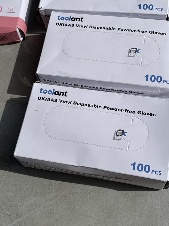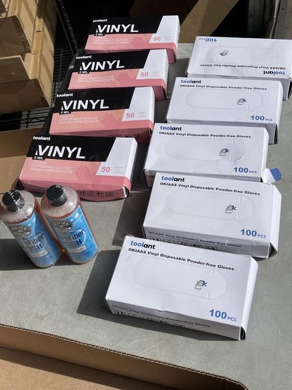 NEW AMAZON OVERSTOCK ITEMS INCLUDING 9 BOXES OF VINYL DISPOSSIBLE GLOVES
