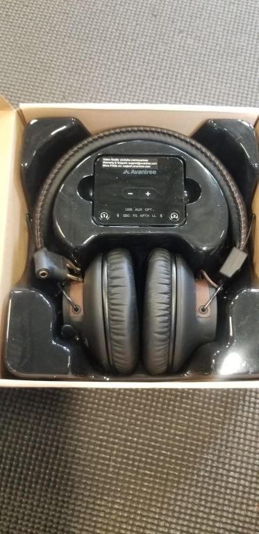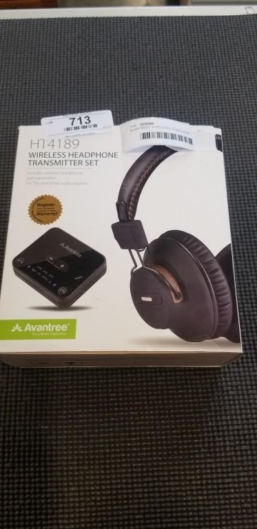 Lot 713 AVANTREEE WIRELESS HEADPHONE TRANSMITTER SET INCLUDES WIRELESS HEADPHONE AND TRANSMITTER FOR TVS AND