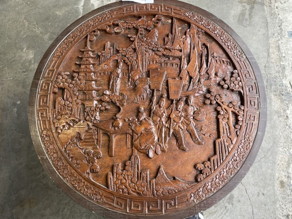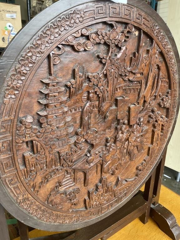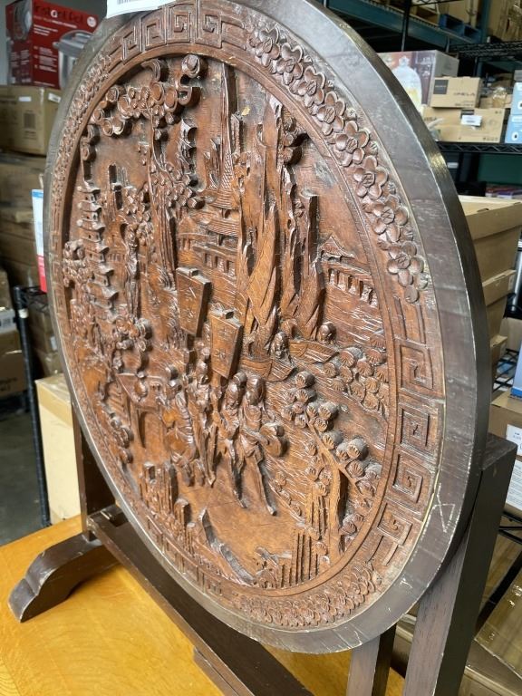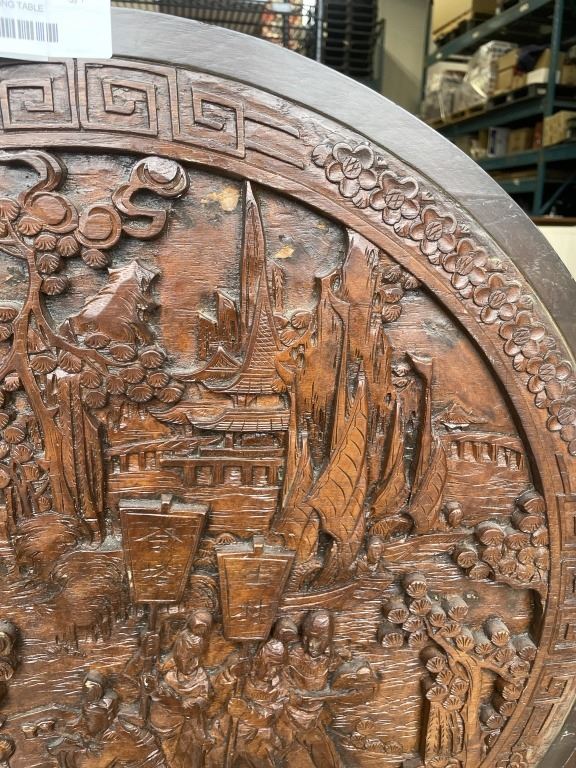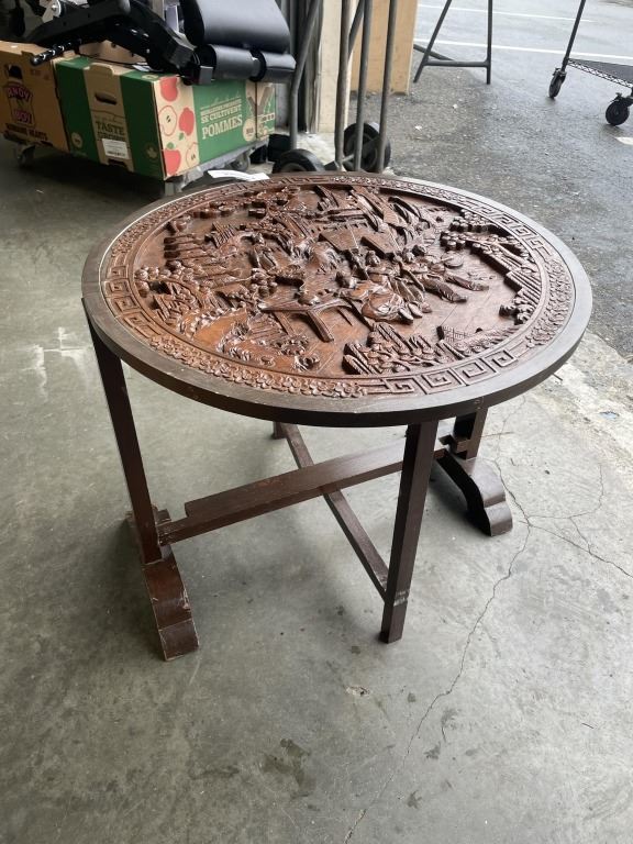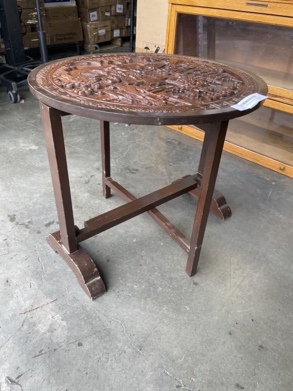 Lot 732 CARVED ANTIQUE FOLDING TABLE