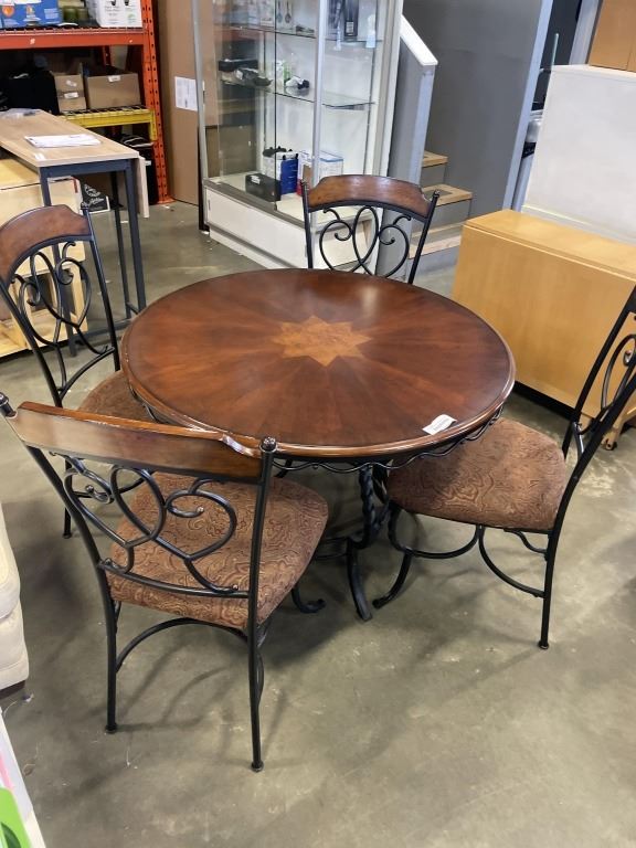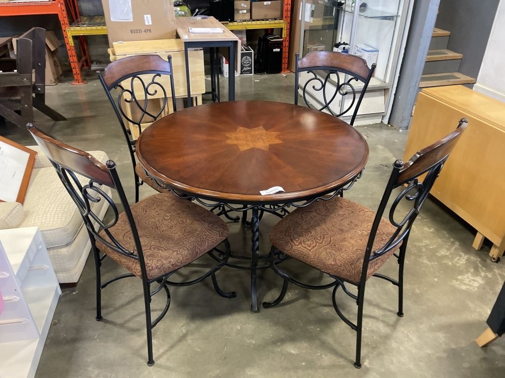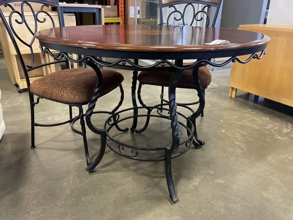METAL BASE WOOD TOP ROUND DINING TABLE W/ 4 CHAIRS