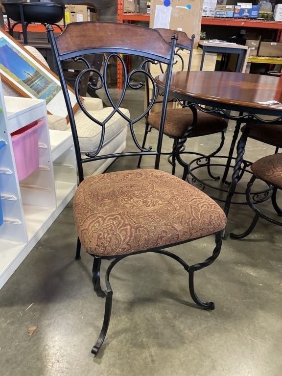 Lot 751 METAL BASE WOOD TOP ROUND DINING TABLE W/ 4 CHAIRS