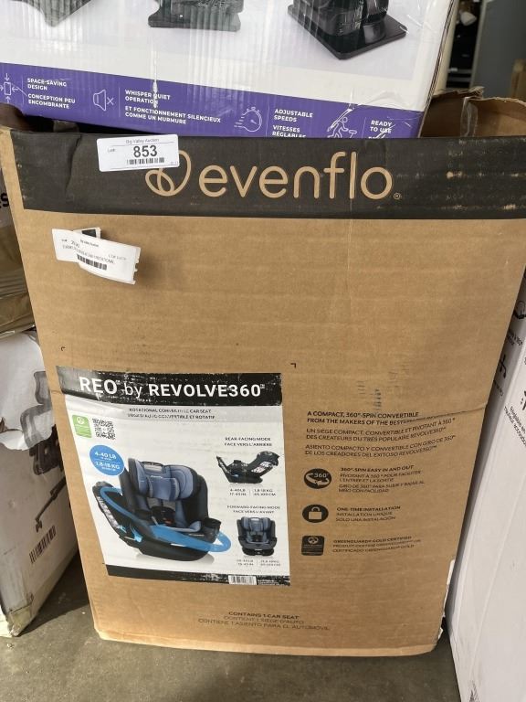 Lot 761 EVENFLO REO REVOLVE 2-IN-1 ROTATIONAL CONVERTIBLE CAR SEAT, RETAIL $499