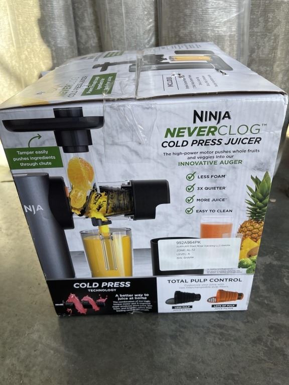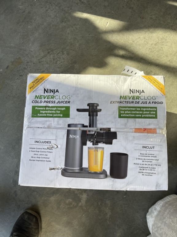 Lot 786 NINJA NEVER CLOG COLD PRESS JUICER - TESTED WORKING, RETAIL $189