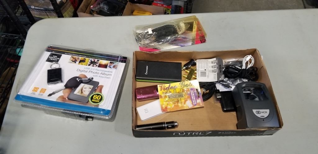 BOX OF ELECTRONICS INCLUDING DIGITAL PHOTO KEYCHAIN ALBUM