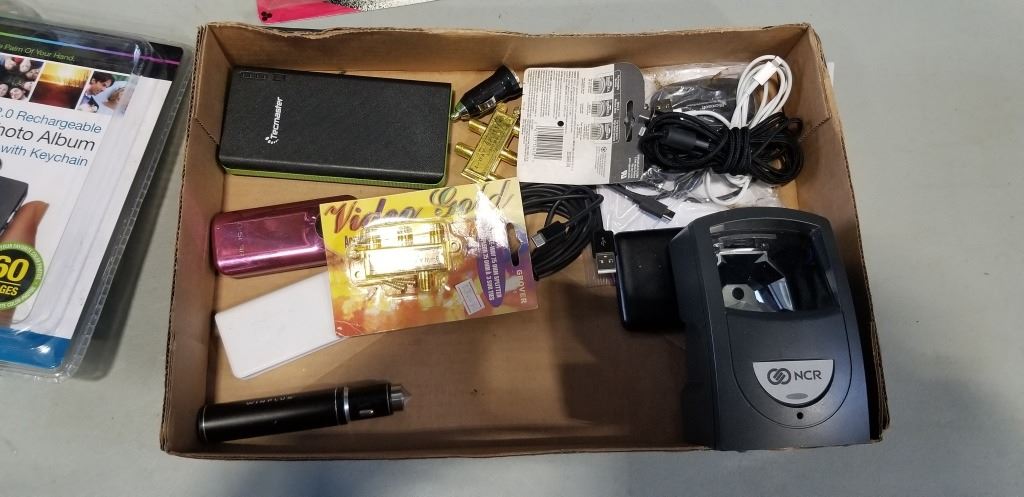 Lot 819 BOX OF ELECTRONICS INCLUDING DIGITAL PHOTO KEYCHAIN ALBUM