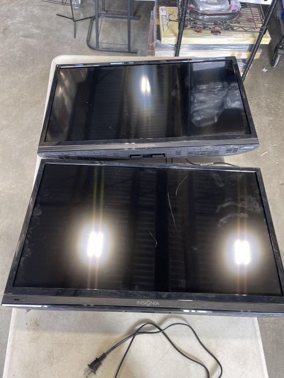 2 INSIGNIA HDTVS BOTH WORKING WITH POWER CORDS AND 1 REMOTE