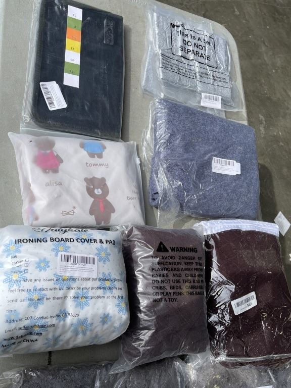 Lot 844 NEW AMAZON OVERSTOCK ITEMS INCULDING BATH RUGS AND IRONING PADS AND SWEAT BANDS FOR SPORTS