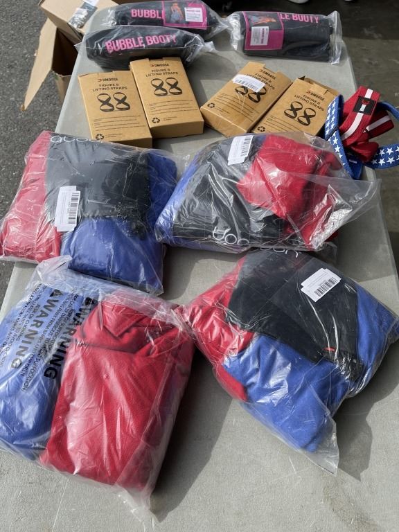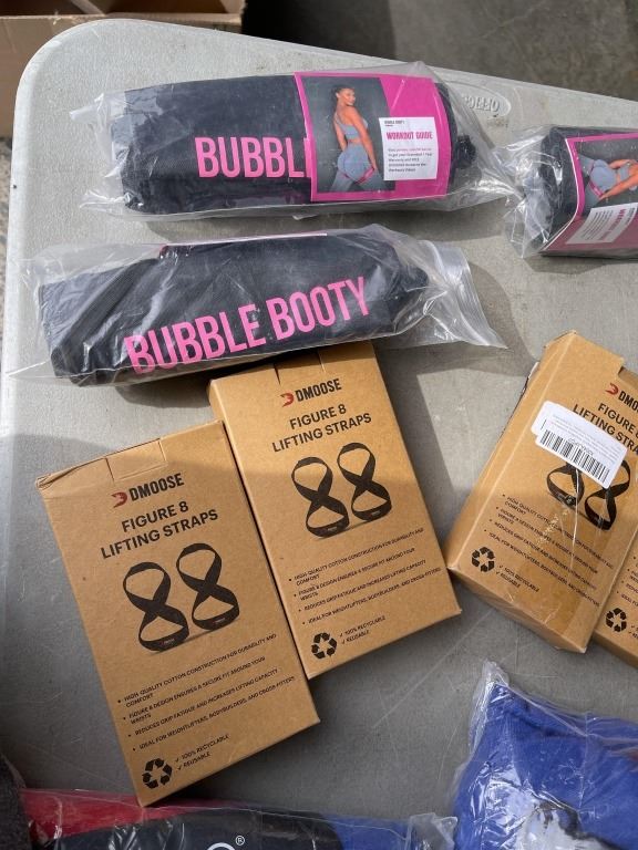 Lot 846 NEW AMAZON OVERSTOCK ITEMS INCLUDING BEAN BAGS SETS AND FIGURE 8 LIFTING STARPS AND SETS OF RESINTEN