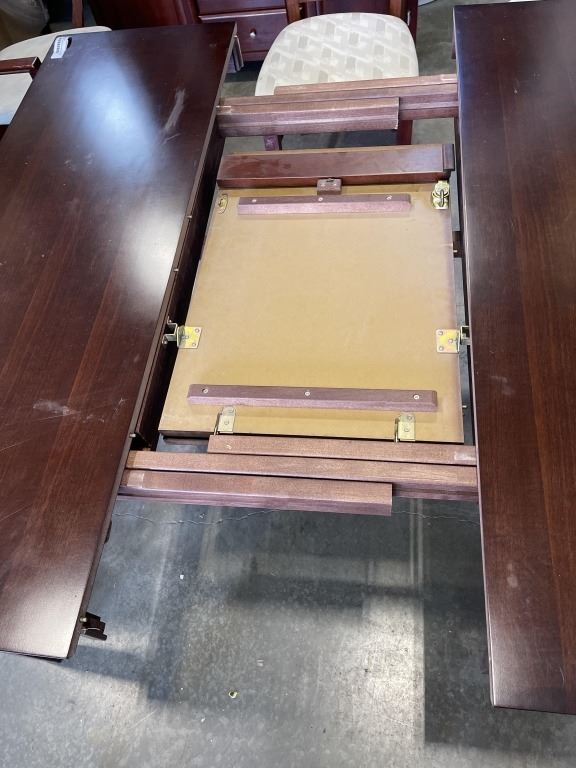 MAHAOGANY FINISH 7PC DINING SET WITH 2 ARMCHAIRS, BUILT IN EXTENSION LEAF