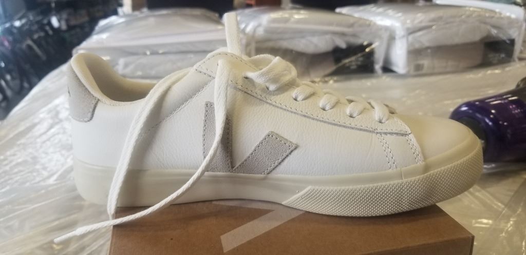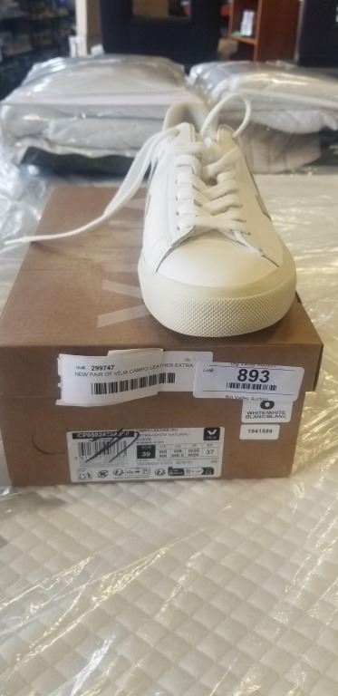 Lot 893 NEW PAIR OF VEJA CAMPO LEATHER EXTRA WHITE NATURAL SUDE SIZE US WOMENS 8 MENS 6